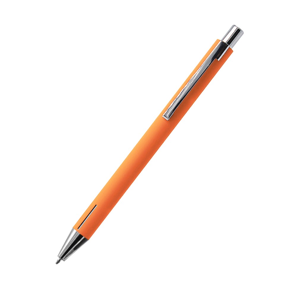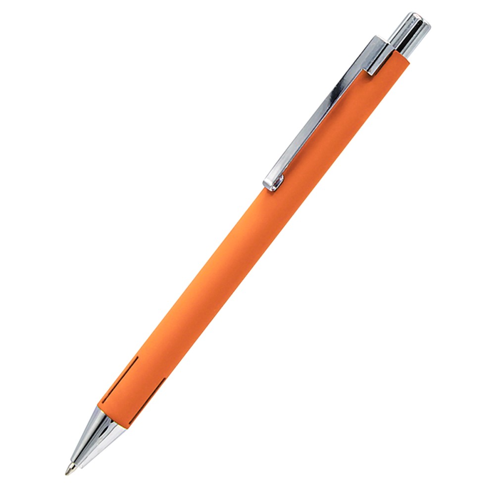 Расчет нанесенияАккуратная и элегантная металлическая ручка с покрытием Soft touch. Толщина пишущего узла 1 мм, длина письма рассчитана на 700 м. Цвет по PANTONE® (максимально приближен): 165 C (корпус).