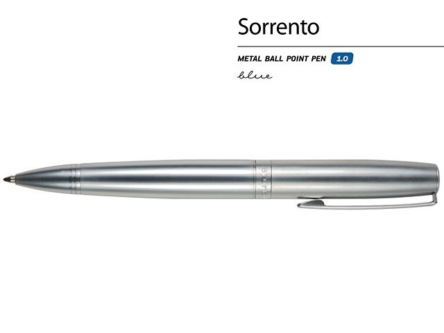 Роскошная металлическая шариковая ручка с синими чернилами из коллекции Sorrento. Как и все подарочные ручки Bruno Visconti, Sorrento - обладательница стержня с пишущим узлом от швейцарского производителя Premec и перманентными чернилами немецкого производителя Dokumental. Поэтому можно быть абсолютно уверенным в качестве письма. Сам стержень легко и бесперебойно выдвигается за счет мягкого поворотного механизма подачи. Увеличенный диаметр корпуса не вызывает дискомфорт в работе благодаря продуманной эргономичной форме и матовому покрытию. Наоборот, ручка смотрится респектабельно.
