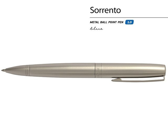 Роскошная металлическая шариковая ручка с синими чернилами из коллекции Sorrento. Как и все подарочные ручки Bruno Visconti, Sorrento - обладательница стержня с пишущим узлом от швейцарского производителя Premec и перманентными чернилами немецкого производителя Dokumental. Поэтому можно быть абсолютно уверенным в качестве письма. Сам стержень легко и бесперебойно выдвигается за счет мягкого поворотного механизма подачи. Увеличенный диаметр корпуса не вызывает дискомфорт в работе благодаря продуманной эргономичной форме и матовому покрытию. Наоборот, ручка смотрится респектабельно.