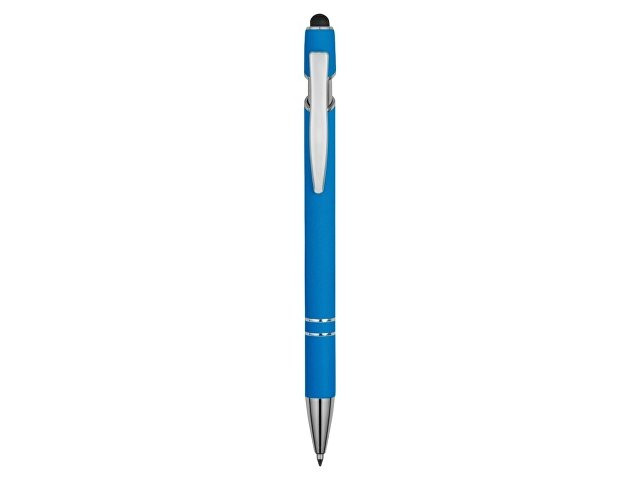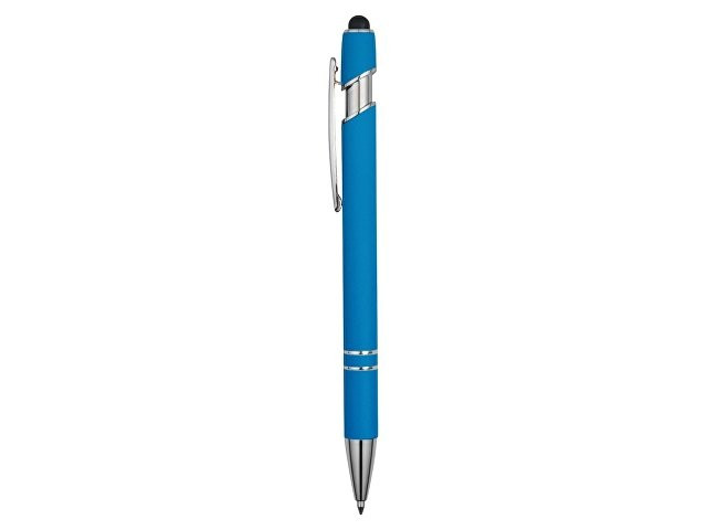 Ручка металлическая soft-touch шариковая со стилусом «Sway», голубой/серебристый
