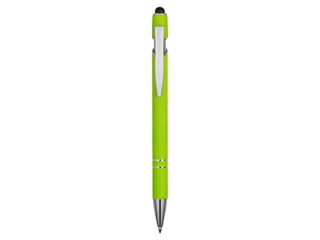 Ручка металлическая soft-touch шариковая со стилусом «Sway», зеленое яблоко/серебристый (P)