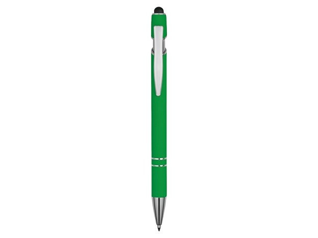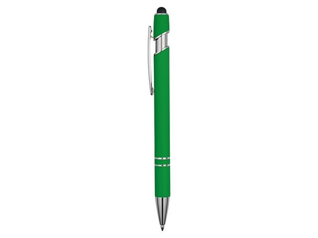 Ручка металлическая soft-touch шариковая со стилусом «Sway», зеленый/серебристый (Р)