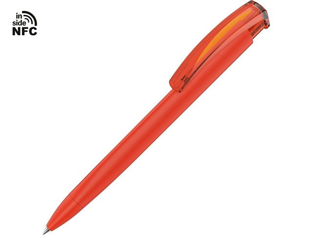 Пластиковая шариковая ручка «Trinity K transparent Gum» soft-touch» с чипом передачи информации NFC обеспечивает быстрый доступ к рекламной информации. Для передачи данных посредством технологии NFC смартфон или планшет, которые поддерживают данную технологию, необходимо поднести к запрограммированной на ручке метке NFC (метка расположена под логотипом NFC). После этого на смартфоне или планшете откроется запрограммированная ссылка на сайт, ролик или начнется загрузка другой информации (заранее загруженной в сеть интернет). Таким образом метка работает как код, при чтении которого смартфон или планшет открывает определенную программу, активирует функцию или ссылку. Можно запрограммировать на метке NFC адрес сайта, каталог и другие рекламные материалы и раздавать вместо визиток. Метка NFC активирует одно действие на смартфоне или планшете. Внимание, программирование метки производится только компанией UMA. Если вы разместили заказ на ручку с меткой, но не прислали информацию, которую необходимо на нее записать, в заказе может быть отгружена ручка без чипа NFC.