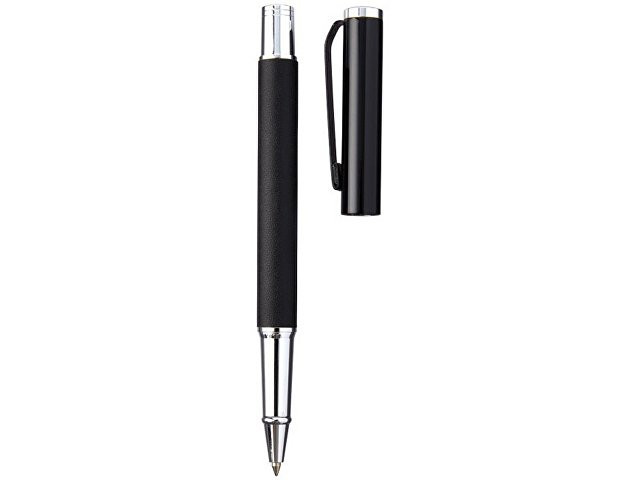 Расчет нанесенияСтильная ручка роллер, с корпусом из искусственной кожи, матовым колпачком и хромированным наконечником станет отличным подарком даже для самых придирчивых клиентов. Черный стержень роллер. Упакована в подарочную коробку.