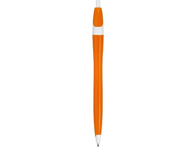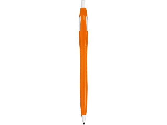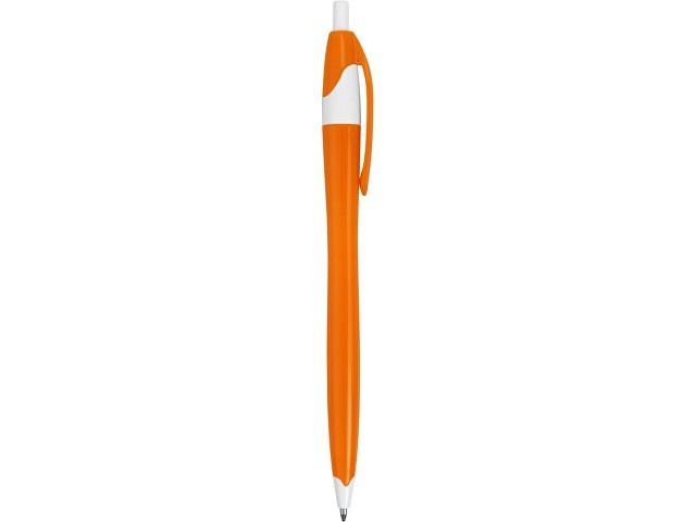Простая, но стильная пластиковая ручка с цветным корпусом и белыми вставками на носике, кнопке и под клипом. Белые вставки делают ручку более заметной, не отвлекая от рекламной информации на ее корпусе.
