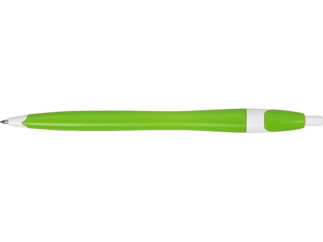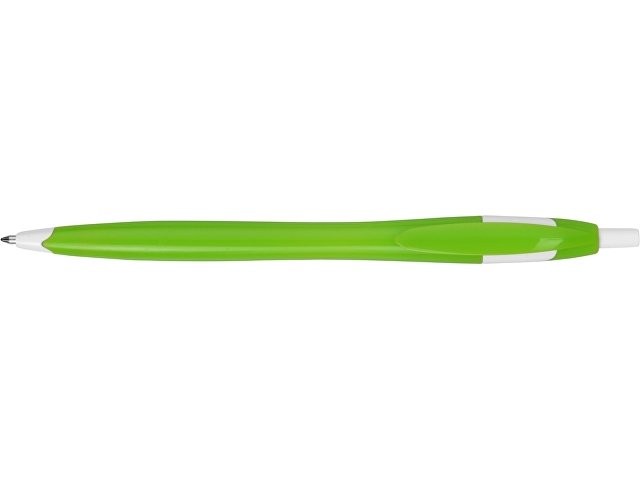 Простая, но стильная пластиковая ручка с цветным корпусом и белыми вставками на носике, кнопке и под клипом. Белые вставки делают ручку более заметной, не отвлекая от рекламной информации на ее корпусе.