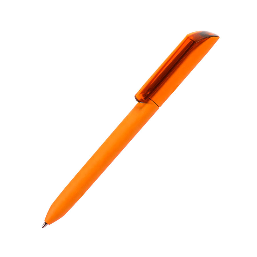 Ручка шариковая FLOW PURE c покрытием soft touch и прозрачным клипом, Оранжевый