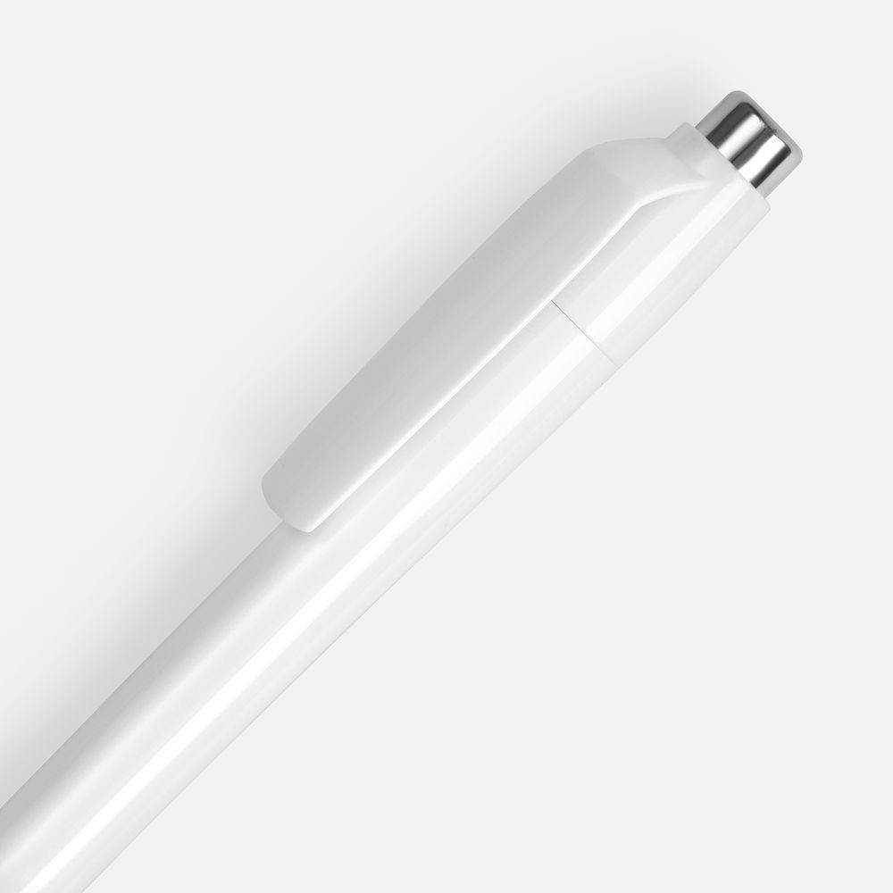 Пластиковая ручка с глянцевым корпусом и хромированными деталями. Большой клип идеален для нанесения логотипа компании.