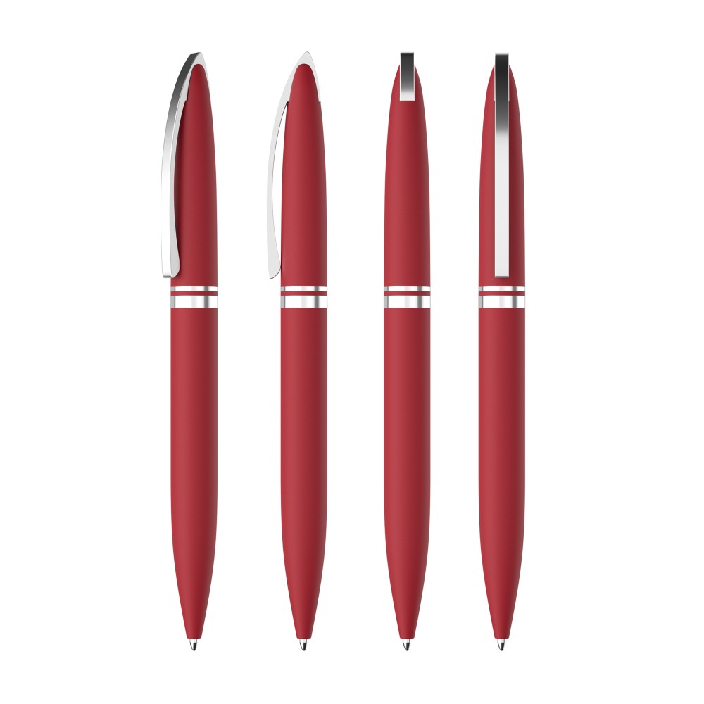 Тонкий цельнометаллический клип подпружинен и имеет ход до 5 мм для удобства зацепления. Деловой имидж ручки подчеркивает солидный вес - 34 г. Матовое прорезиненное покрытие хорошо сочетается с блестящими хромированными элементами.