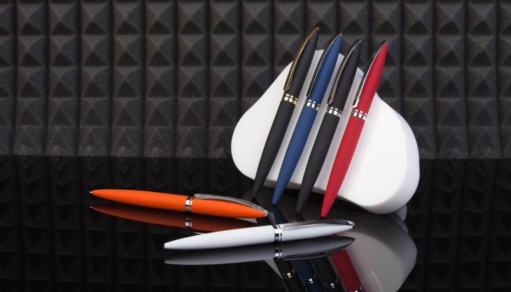 Тонкий цельнометаллический клип подпружинен и имеет ход до 5 мм для удобства зацепления. Деловой имидж ручки подчеркивает солидный вес - 34 г. Матовое прорезиненное покрытие хорошо сочетается с блестящими хромированными элементами.