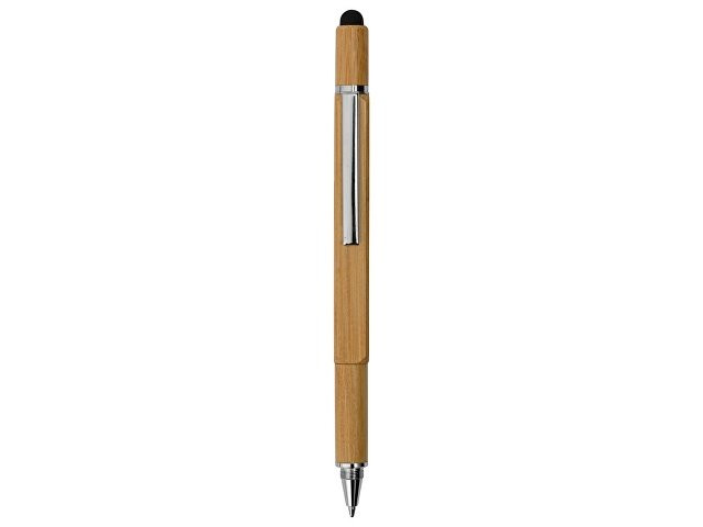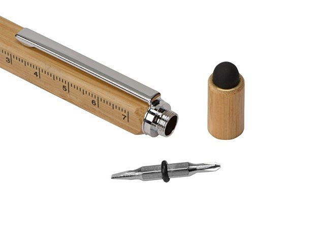 Четырехгранная шариковая ручка с поворотным механизмом в бамбуковом корпусе сочетает несколько полезных функций: • Стилус для работы с устройствами с сенсорными экранами. • Линейка на 7 см. • Под стилусом располагаются крестовая и плоская отвертки (2 в 1). • Стальной клип надежно удерживает ручку в кармане. • В корпус встроен уровень для определения углового отклонения от горизонтальной или вертикальной поверхности. • Колпачок можно накрутить сверху или снизу ручки. • Возможность нанесения логотипа на две грани ручки.