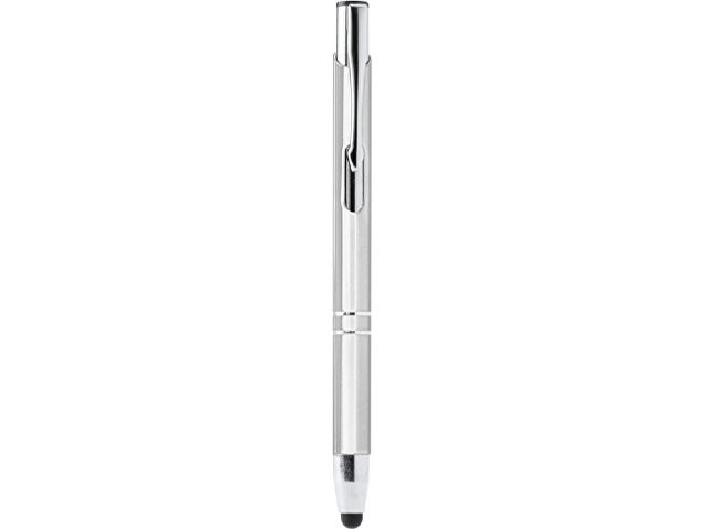 Шариковая ручка с алюминиевым корпусом и кнопкой с анодированным покрытием. Сенсорный стилус. Синие чернила.