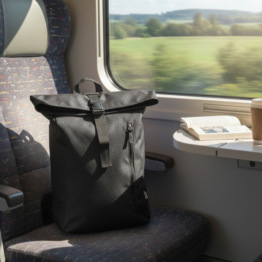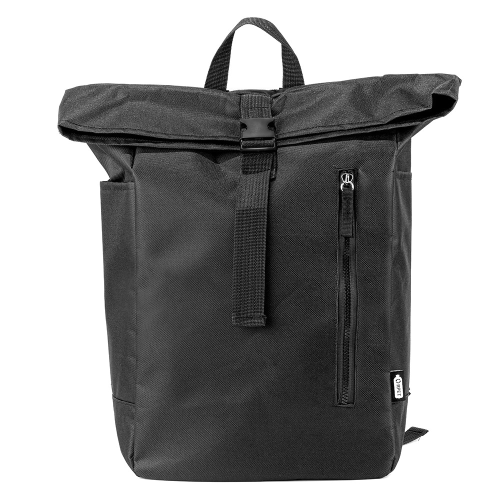 Городской ролл-топ рюкзак ARGON из переработранного полиэстера RPET. Одно основное отделение закрываеся на регулируемый по длине ремень c пряжкой-фастексом. На передней стенке вертикальный карман на молнии-тракторе. Два боковых открытых кармана. Короткая ручка и уплотнённые регулируемые по длине плечевые ремни. Уплотнённая задняя стенка. Размер: 27,5*44(52,5)*16cm Плотность: 600D Рекомендуемая максимальная нагрузка: не более 5 кг. Вместимость: 17 л.