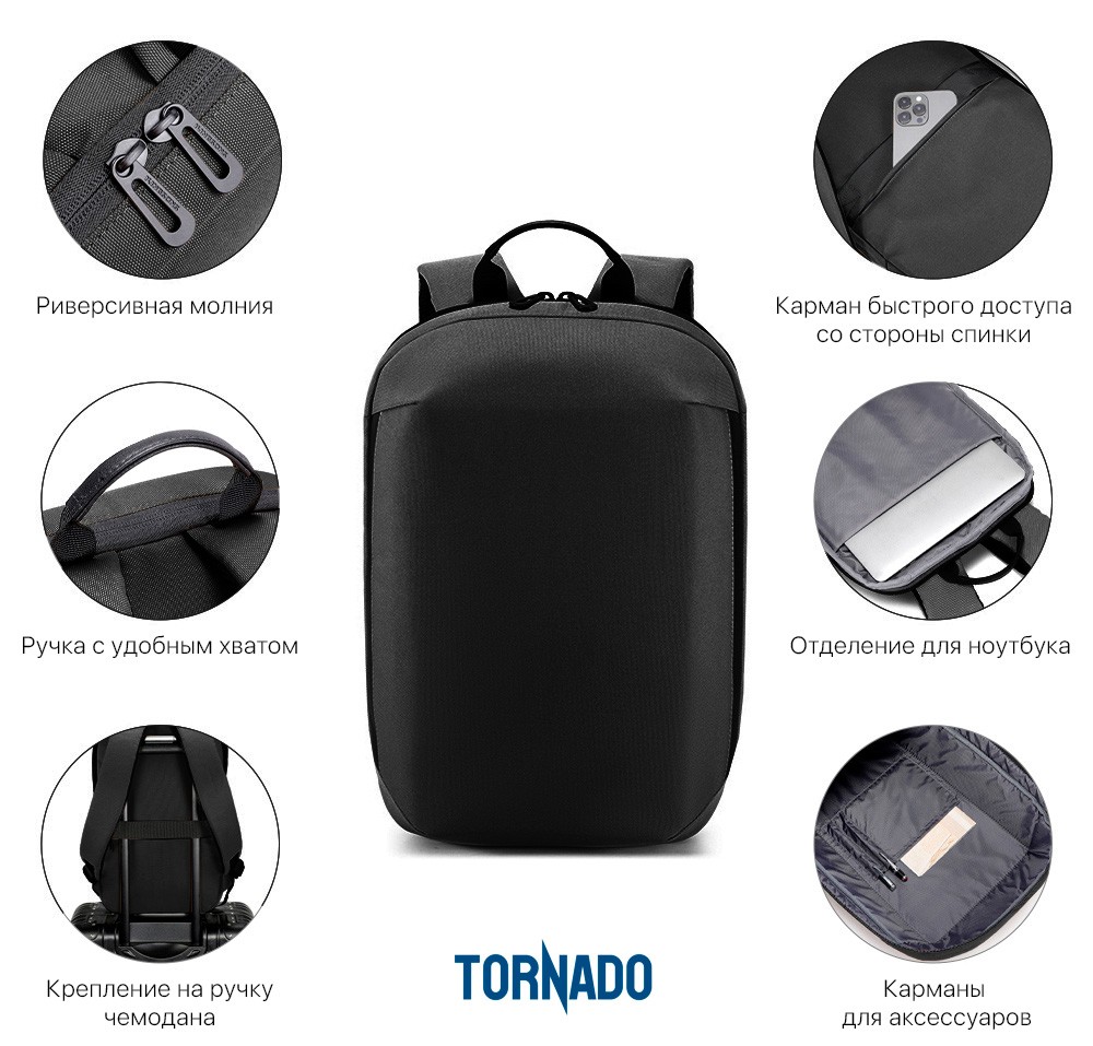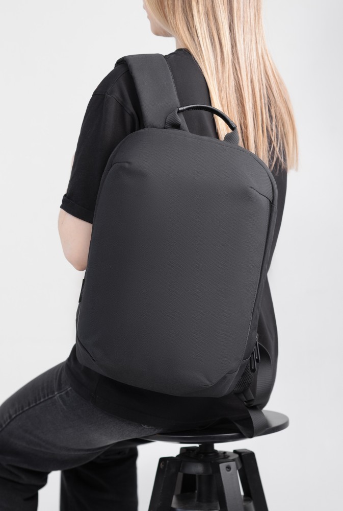 Рюкзак "Balance" для тех кому важна практичность. Основной материал - переработанный пластик (rPET) c пыле-/влагозащитой. Отсутствие карманов с внешней стороны в угоду минимализму и для защиты от краж. Риверсивная молния основного отделения придает целостный законченный вид, при необходимости на пуллеры можно установить багажный кодовый замок. Крепление на ручку чемодана со стороны спинки, быстрая регулировка длины лямок.