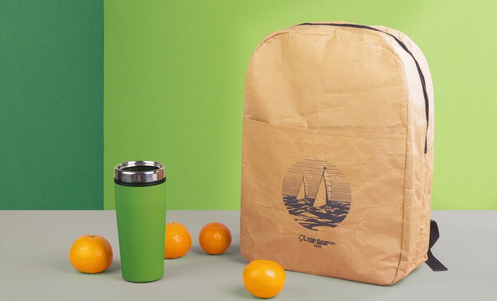 «Craft» изготовлен из сверхпрочной ламинированной бумаги плотностью 130 г/м2. Основное вместительное отделение на молнии, дополнительный внешний карман на лицевой стороне. Торцы лямок усилены черным кантом.