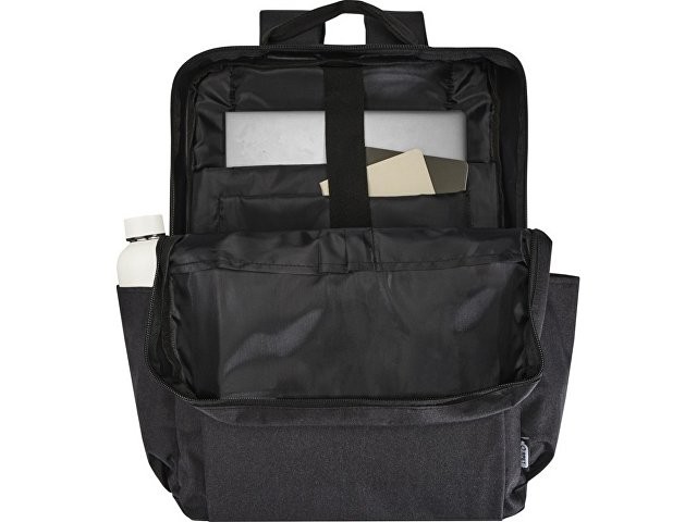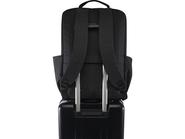 Рюкзак Libra изготовлен из переработанного полиэстера, сертифицированного согласно GRS, и подкладки из RPET. Он оснащен отделением для ноутбука диагональю 15 дюймов с дополнительным мягким карманом для планшета и карманами-органайзерами внутри. Снаружи также имеется несколько карманов, мягкие регулируемые плечевые ремни и ремень для крепления для ручки чемодана сзади. Выдерживает вес до 10 кг. GRS certified recycled polyester.