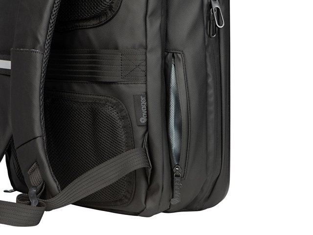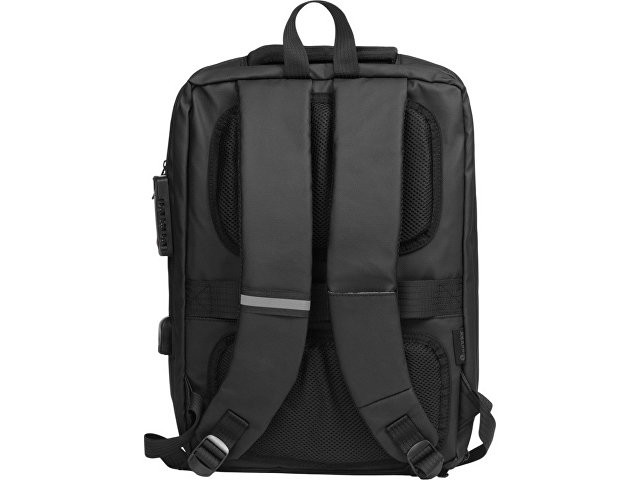 Водостойкий бизнес-рюкзак с пластиковой панелью спереди выглядит стильно и обеспечивает бережное хранение ваших личных вещей. Подходит для передвижений по городу и деловых поездок. 2 вместительных отделения позволяют разместить все необходимое: большое отделение для одежды с фиксирующими ремнями и органайзером, меньшее отделение с карманами для ноутбука и планшета и сетчатым органайзером. Несанкционированный доступ к содержимому вашего рюкзака будет затруднён благодаря кодовому замку и прочной пластиковой панели спереди. В рюкзаке предусмотрено много дополнительных удобств для использования: - интегрированный карман на молнии для бутылки сбоку - расстегнули, не снимая рюкзак, и бутылка окажется внутри корпуса - USB выход - светоотражающий элемент на лямке для большей безопасности - карман на лямке для карт, проездного или ключей - регулирующиеся по длине лямки - сетчатая спинка - ремень для крепления на ручку чемодана - нетканый мешок для хранения в комплекте - шильд для нанесения вашего логотипа в комплекте
