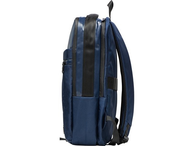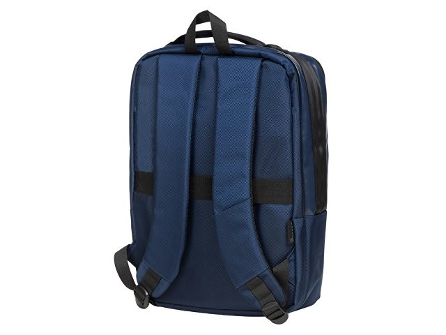 Удобный бизнес-рюкзак для передвижения по городу и деловых поездок состоит из отделения для ноутбука и планшета, большого отделения для одежды с фиксирующими ремнями, 2х наружных карманов на молнии спереди. Конструкция рюкзака продумана до мелочей: внутри большого отделения расположен органайзер для гаджетов и проводов, на спинке есть ремень для крепления на ручку чемодана и регулирующиеся по длине лямки, на лямке - карман для карт или ключей. Водостойкий материал и молнии. В комплекте мешок из спанбонда для хранения и металлический шильд под ваш логотип.