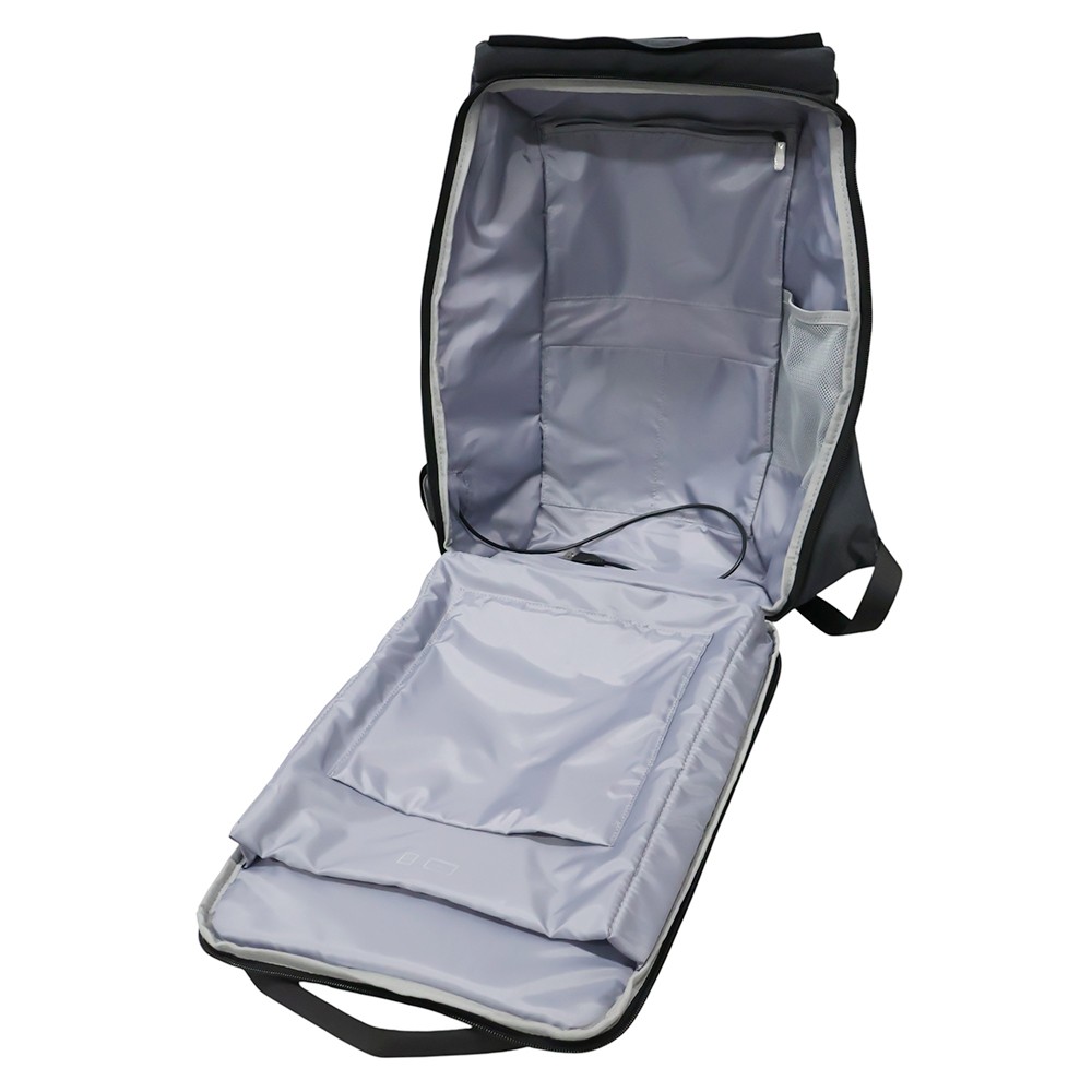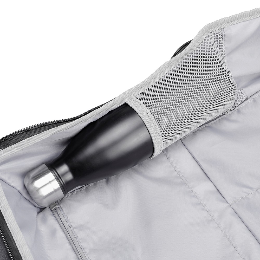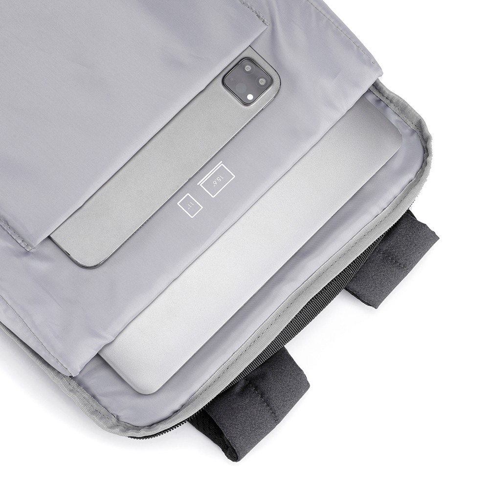Антикражный лаконичный городской рюкзак HORIZONT. Его особенности - инновационный оригинальный дизайн, спрятанная на спинке рюкзака застёжка-молния со скрытым звеном выдерживает более 5000 открываний и надёжно защищает содержимое при поездках в общественном транспорте. Рюкзак раскрывается на 180°, а прочный влагостойкий материал и множество карманов, в том числе специальный крарман для АРОМАСАШЕ делают эту модель MUST HAVE. В одном большом отделении разместились уплотнённые карманы для ноутбука 15,6 и планшета 10 дюймов, карман на молнии для документов, карман-органайзер для аксессуаров и ЭКСКЛЮЗИВНАЯ ОПЦИЯ - специальный карман-сетка ДЛЯ АРОМАСАШЕ. На передней стенке есть металлический шильд размером 51*9,8 мм для кастомизации. Гигроскопичная вентилируемая трехслойная 3D-сетка на задней стенке и подкладке плечевых ремней предотвращает скольжение и обеспечивает дополнительную вентиляцию и комфорт при контакте с кожей и одеждой. Двойное уплотнение задней стенки распределяет вес и снижает нагрузку на позвоночник. Уплотнённые плечевые ремни регулируются по длине, а дополнительные петли из искусственной кожи позволяют фиксировать на них аксессуары и гаджеты. Дополнительное 3-хкратное укрепление пришива короткой ручки и плечевых ремней гарантирует особую прочность и долговечность. Короткая уплотнённая комфортная ручка может быть использована как крепление на чемодане. Удобно расположенный USB-разьем со шнуром для подключения внешнего аккумулятора позволяет оперативно заряжать гаджеты. В комплекте с рюкзаком идет пакет-пыльник из спанбонда на стяжке для его хранения. Шильда 51*9,8 мм. Размер: 46,5*29*15 см Материал: Полиэстер с водонепроницаемой пропиткой + искусственная кожа Плотность: 600D Цвет по PANTONE® (максимально приближен): Gray 11C Рекомендуемая максимальная нагрузка: не более 10 кг. Вместимость: 16 л. Вес: 0.635 кг