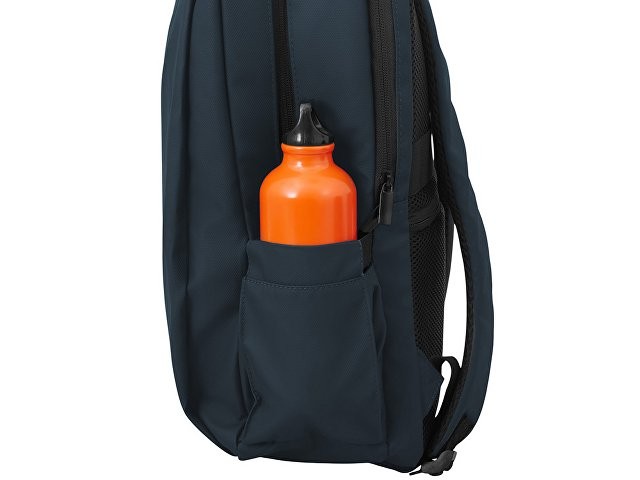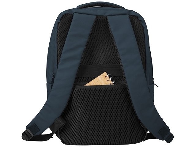 Непромокаемый бизнес рюкзак с двумя вместительными отделениями и карманом на молнии спереди. В одном отделении расположены карман для ноутбука и планшета, в другом органайзер и много пространства для одежды и других вещей на случай деловой поездки. На сетчатой спинке расположен потайной кармана на молнии для документов и личных вещей и ремень для крепления на ручку чемодана. Сверху удобная мягкая ручка для переноски. Лямки регулируются по длине.
