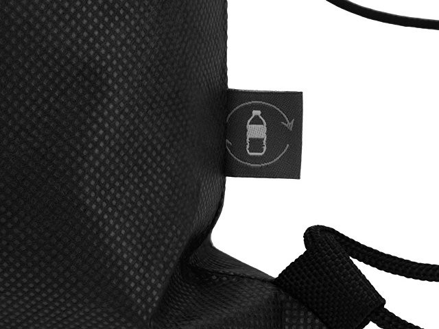 Рюкзак-мешок изготовлен из переработанного пластика. Затягивается с помощью двух боковых шнурков.