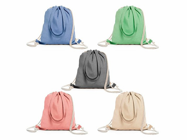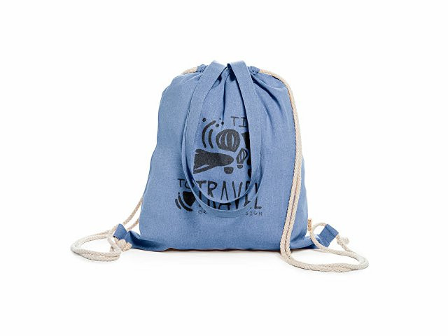 Расчет нанесенияРюкзак-мешок из переработанного хлопка плотностью 140 г/м² с меланжевой отделкой, ручками длиной 70 см в тон и шнурками натурального цвета.