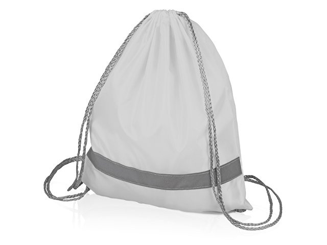 Расчет нанесенияРюкзак-мешок со светоотражающей полосой и серыми шнурками.