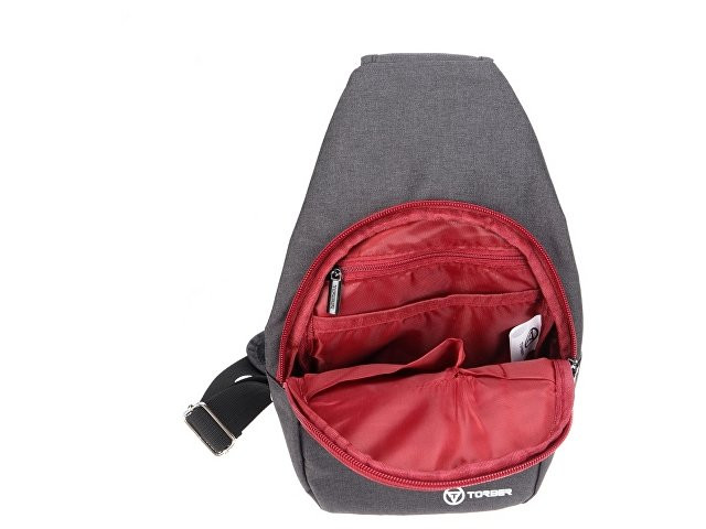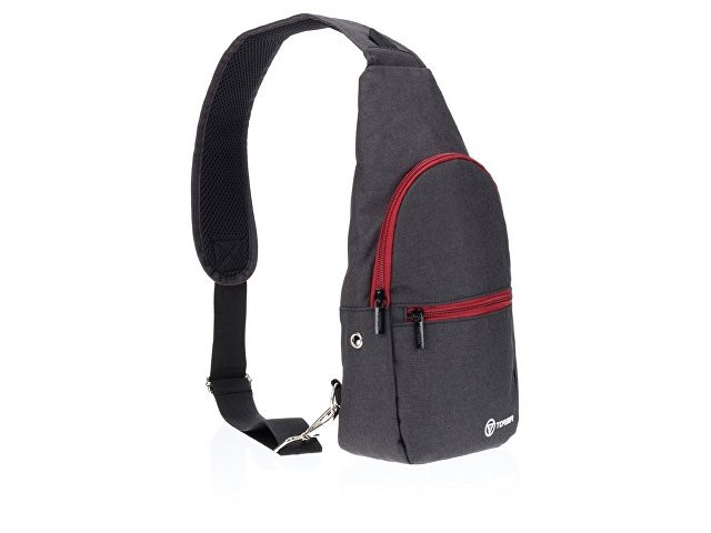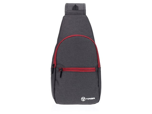 Рюкзак TORBER с одним плечевым ремнем, чёрный/бордовый, полиэстер 300D, 33 х 17 х 6 см