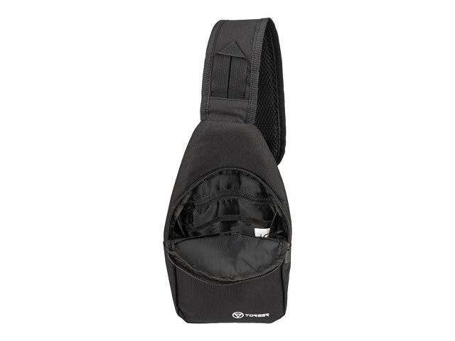 Рюкзак TORBER с одним плечевым ремнем, чёрный, полиэстер 300D, 33 х 17 х 6 см