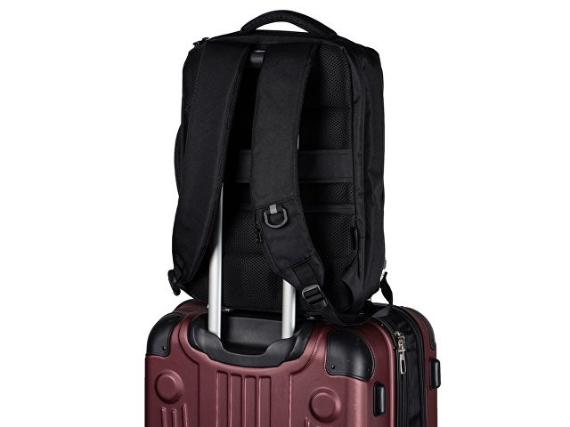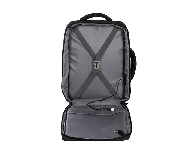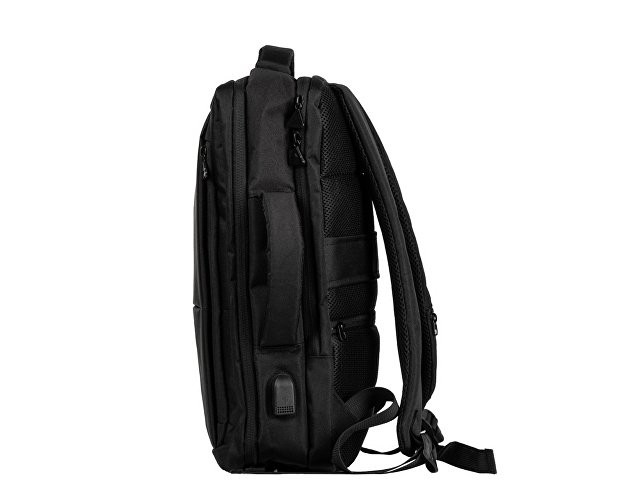 Уникальный и удобный рюкзак-трансформер может легко превратиться в элегантную сумку для деловых поездок благодаря двум вариантам использования. - большое отделение с эластичными фиксирующими ремнями для одежды и карабином для ключей - отделение для ноутбука с органайзером - спереди 2 кармана на молниях - USB выход - на спинке потайной карман на молнии - регулирующиеся по длине лямки - светоотражающий элемент и карман на молнии для карточек и других ценных мелочей на лямке - ремень для крепления на чемодан - дышащая спинка