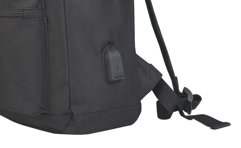 Достаточный объём и несколько отделений рюкзака позволят вместить всё самое необходимое. Основной материал - полиэстер плотностью 600 D хорошо держит форму и устойчив к сминанию. Прорезиненная подложка надежно защищает содержимое от влаги. Есть внешний карман на молнии, карман-сетка с боковой стороны и выход для проводов с противоположной стороны. Основное отделение имеет скрытую молнию и внутри – карман с RFID-защитой. Внутренний подклад – серого цвета.