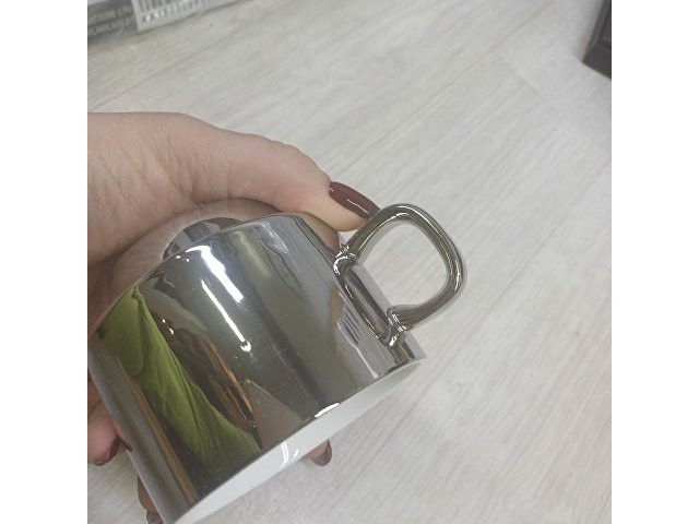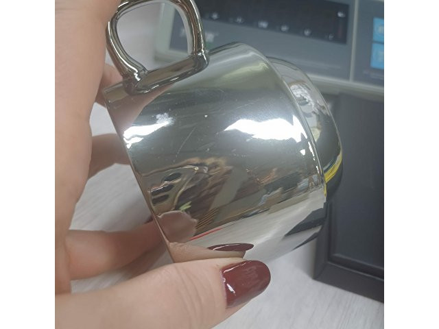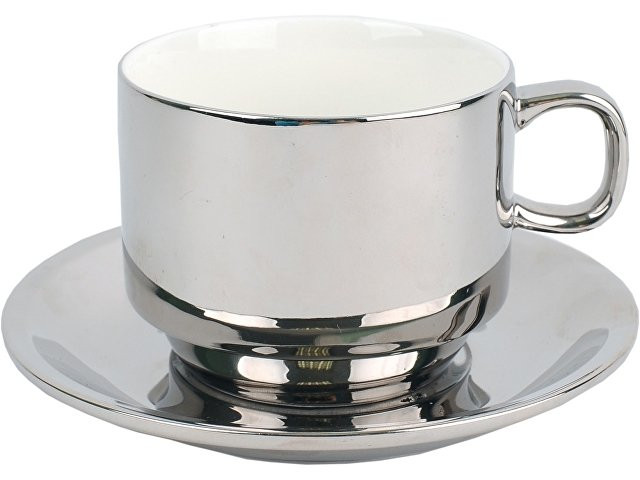 Расчет нанесенияРоскошная чайная пара – отличный подарок для любителей чая. В наборе фарфоровые чашка и блюдце. Дизайн построен на сочетании жемчужного и серебристого цветов. Возможно нанесение тампопечати.