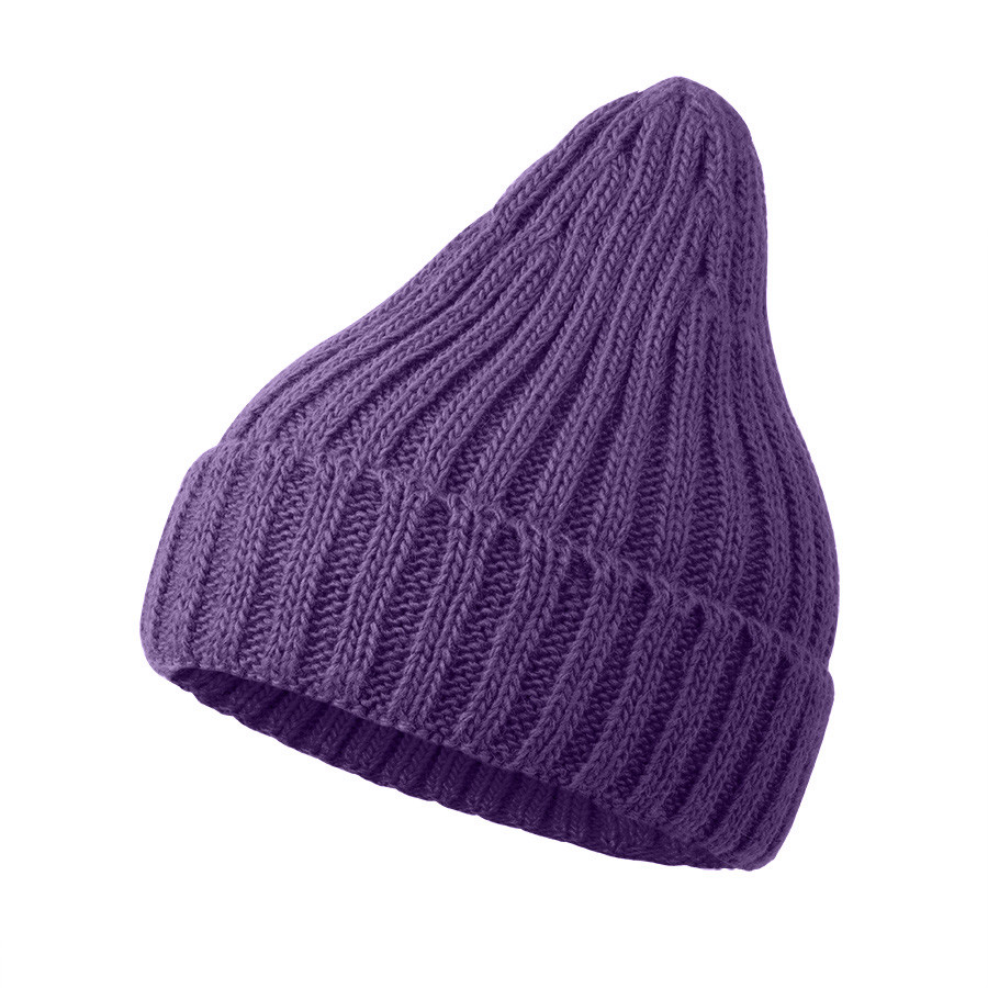 Шапка бини вязаная НАСВЯЗИ© шерсть/ акрил, Фиолетовый