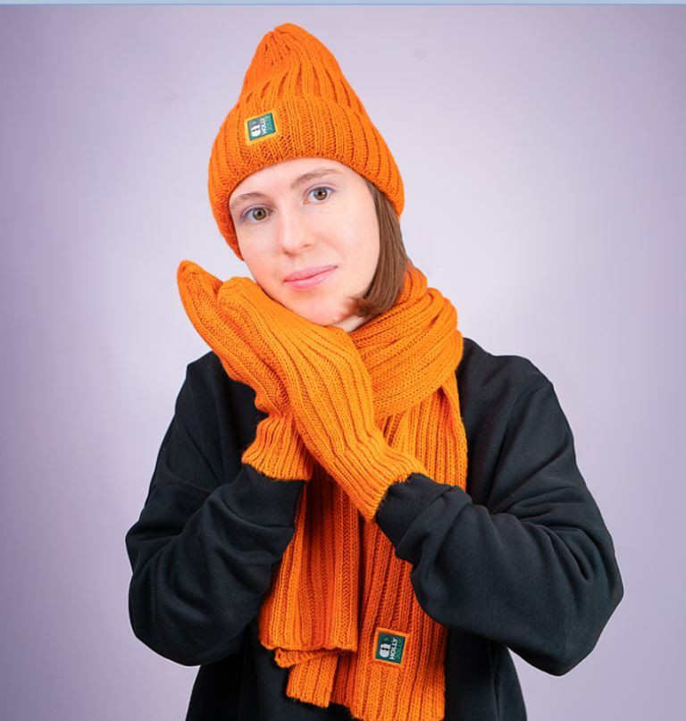 Шапка бини вязаная НАСВЯЗИ© шерсть/ акрил, Оранжевый