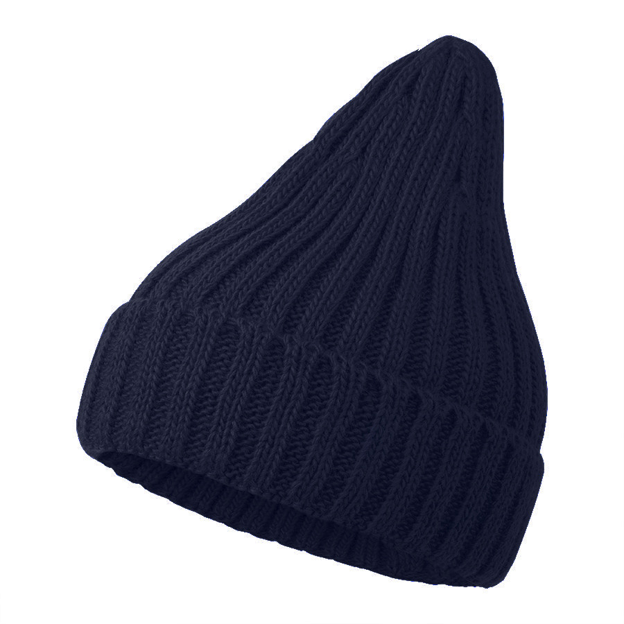 Шапка бини вязаная НАСВЯЗИ© шерсть/ акрил, Темно-синий