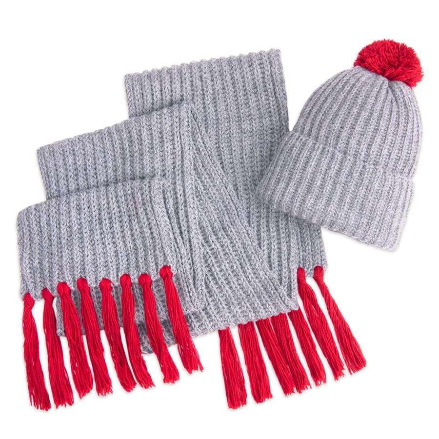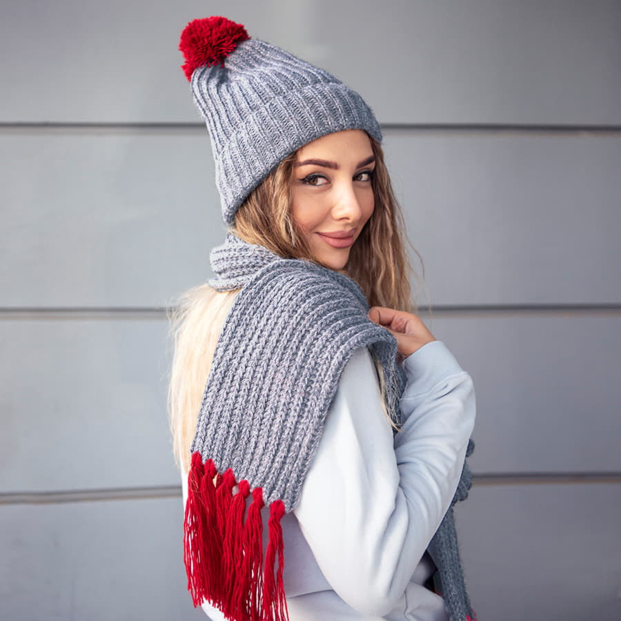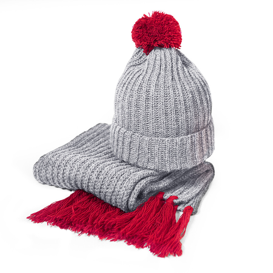Шапка и шарф GoSnow с ярким помпоном и кисточками, Красный