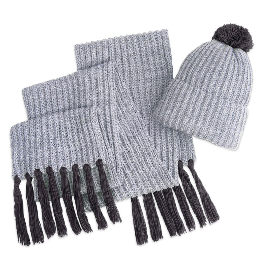 Шапка и шарф GoSnow с ярким помпоном и кисточками, Серый