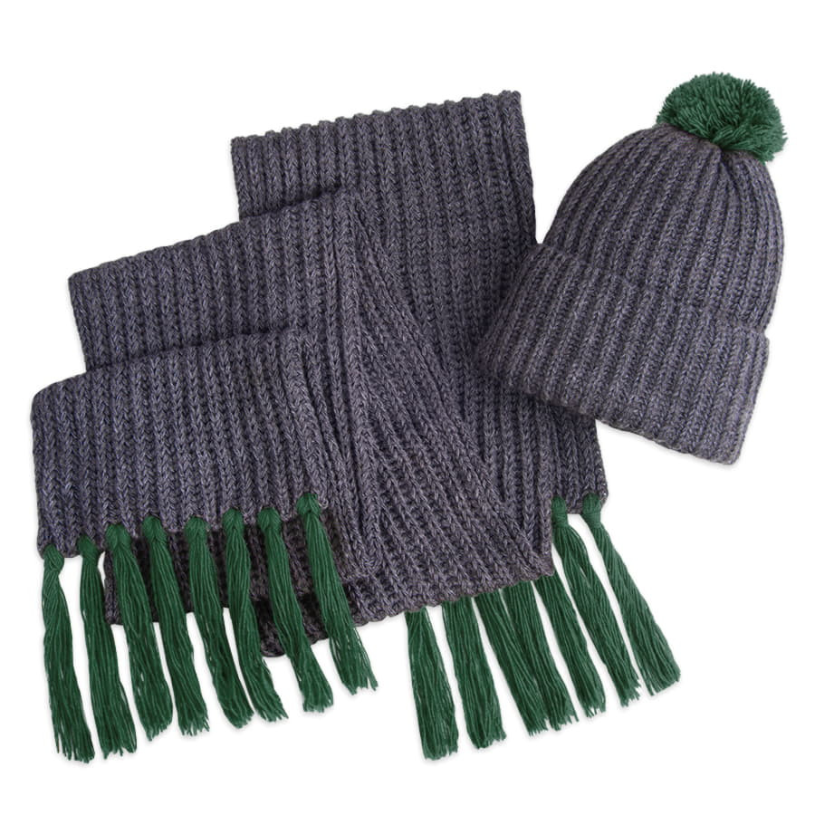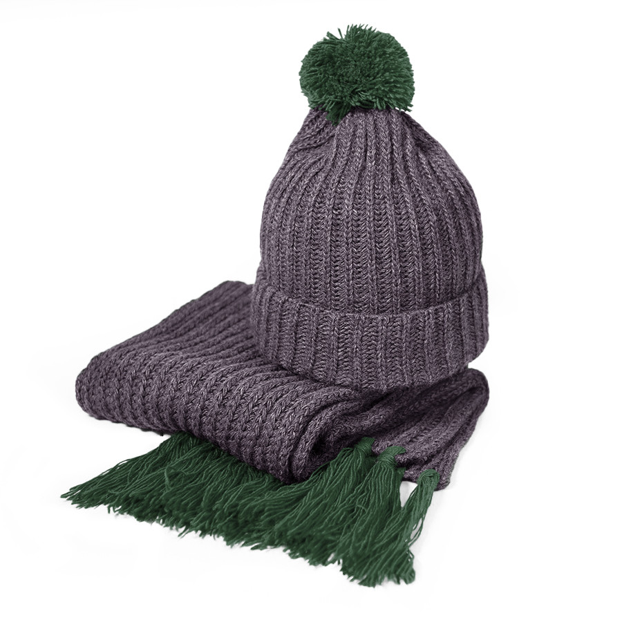 Шапка и шарф GoSnow с ярким помпоном и кисточками, Темно-зелёный