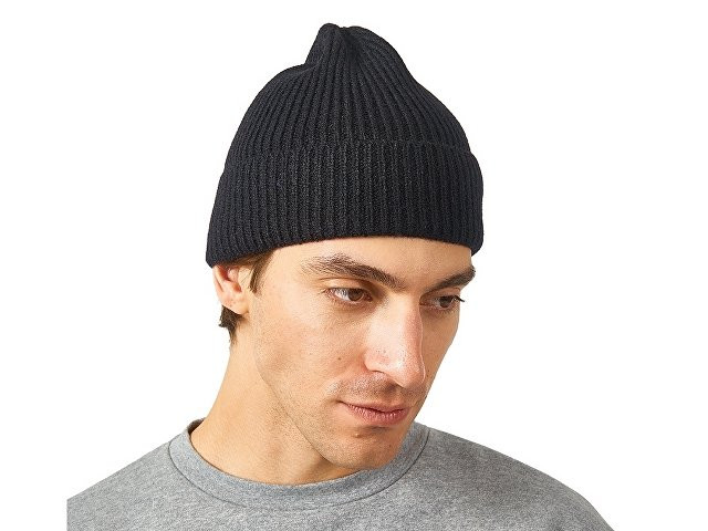 Вязаная шапка из мягкого трикотажа в рубчик. Шапка связана рибом 1х1.