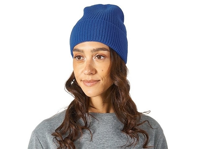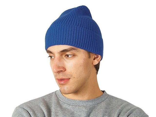 Вязаная шапка из мягкого трикотажа в рубчик. Шапка связана рибом 1х1.