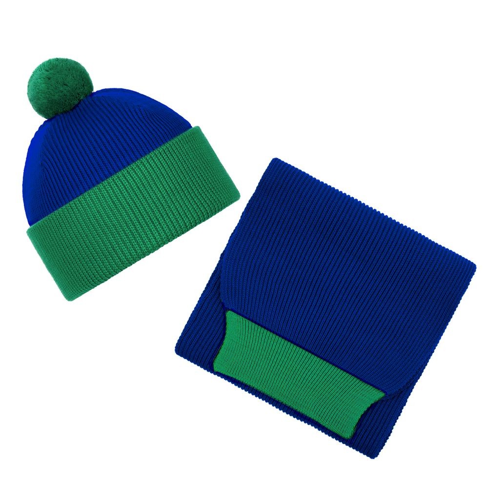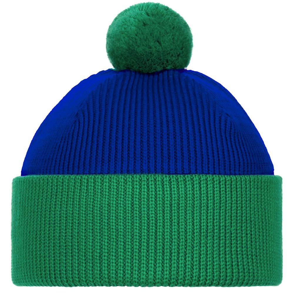 Двуслойная шапка фактурной вязки с контрастным подворотом и помпоном.