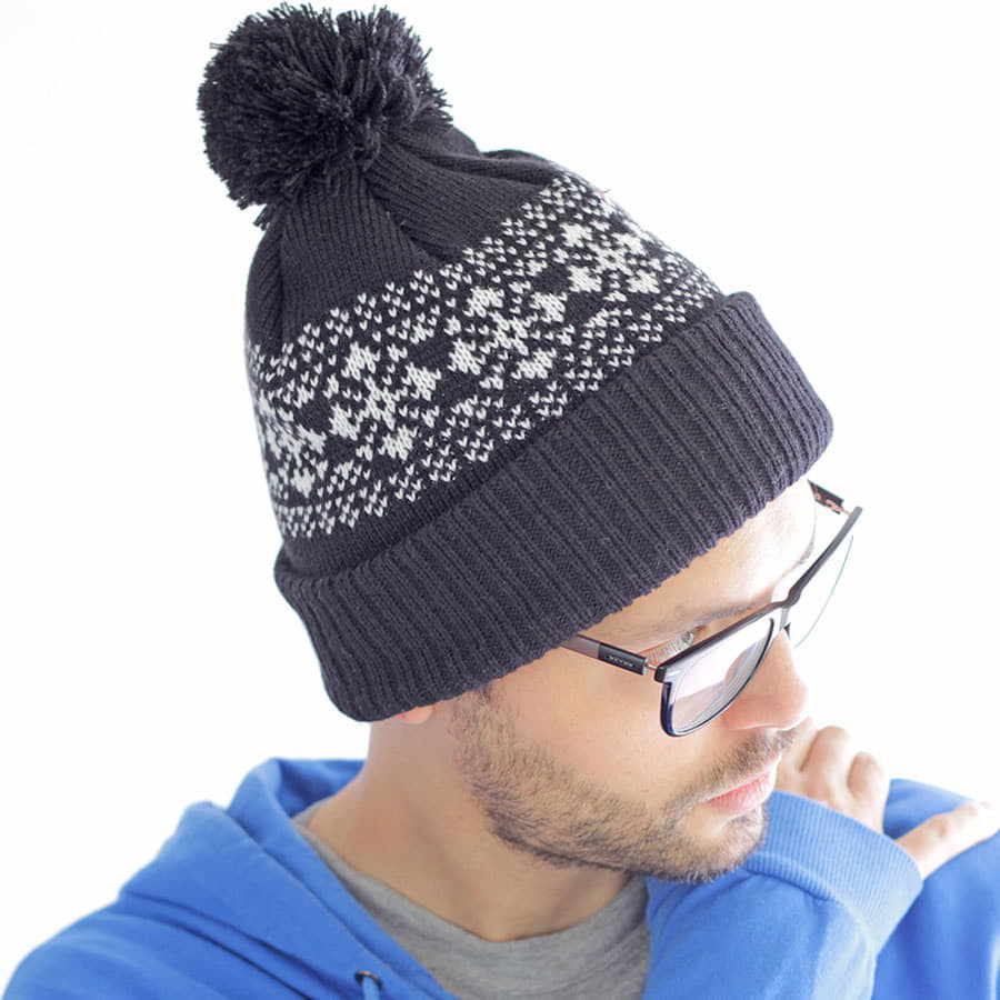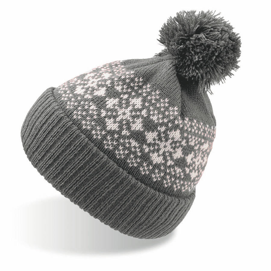 Шапка вязаная с снежинками и помпоном "FLAKE"_бордо, 100% акрил , Серый