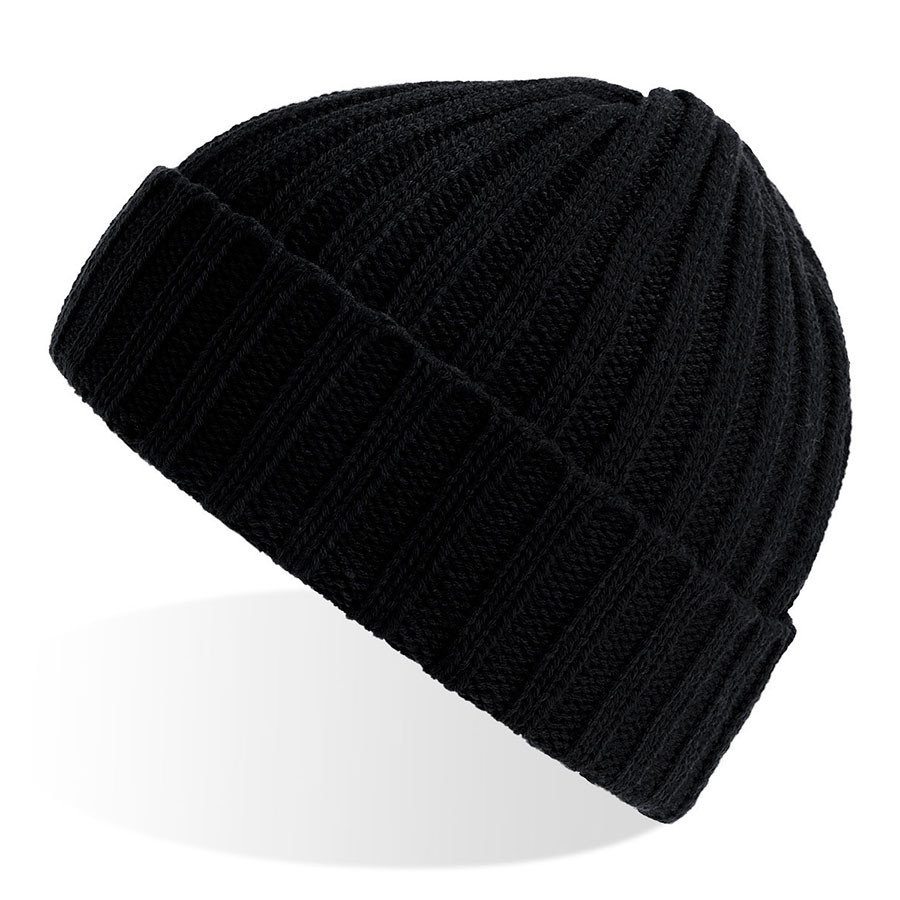 Шапка вязаная SHORE с отворотом из материала rPET/рециклированного полиэстера, Черный