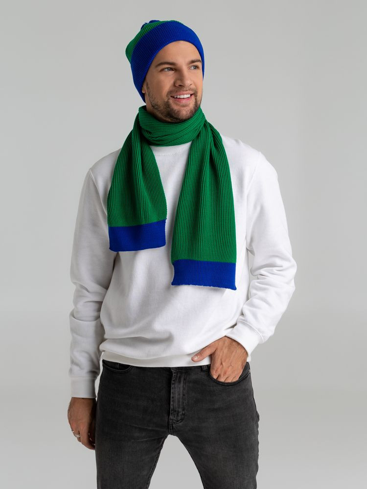 Двухслойный шарф фактурной вязки с контрастной отделкой.
