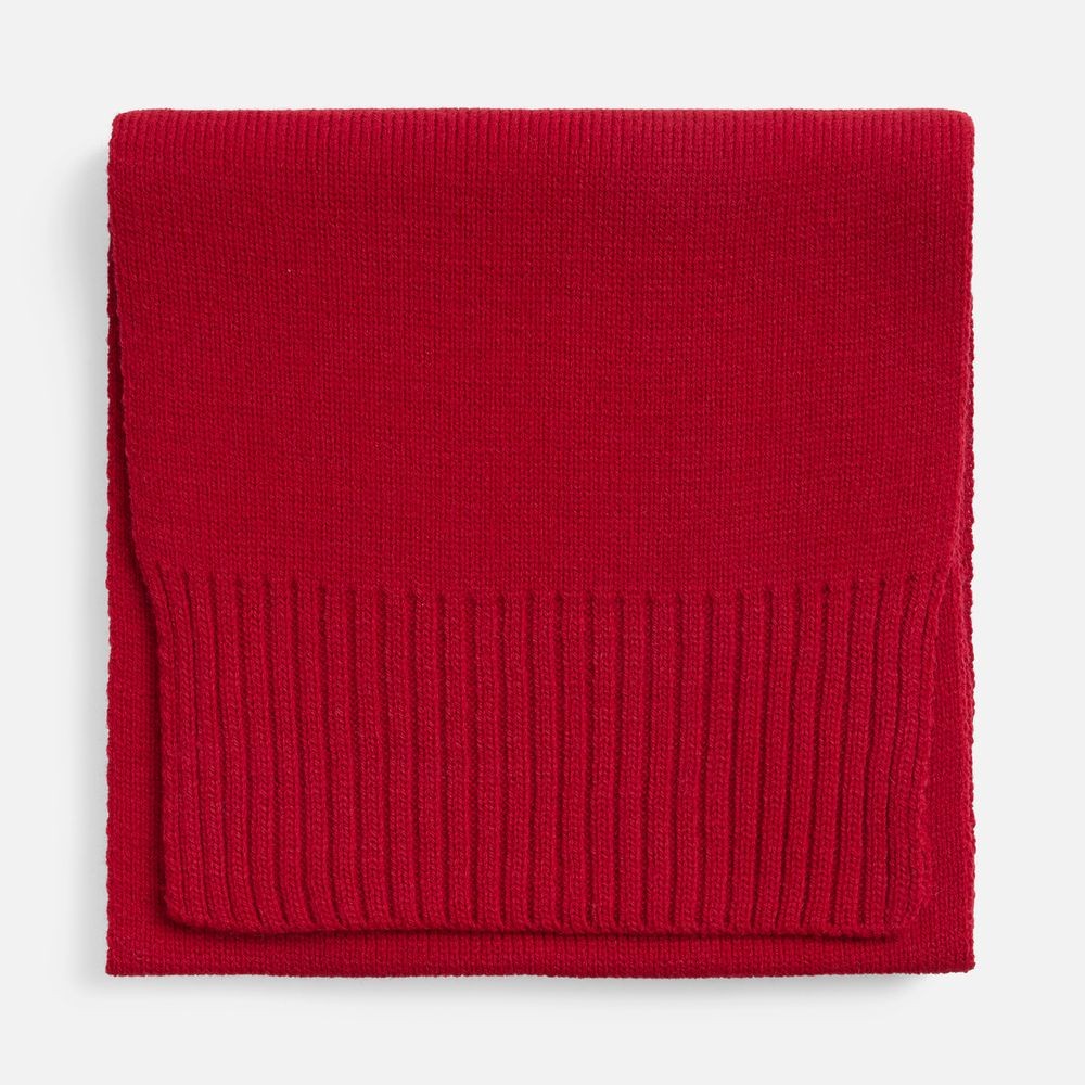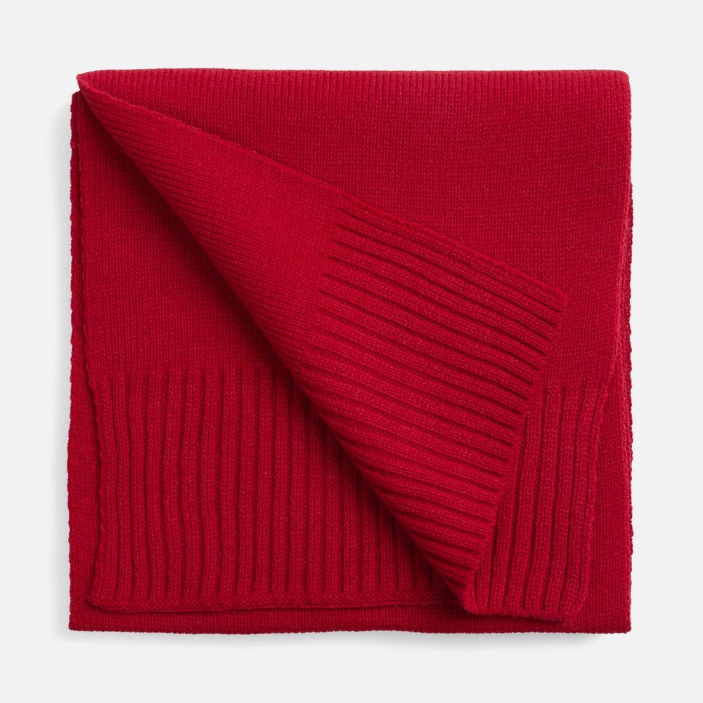 Классический однослойный шарф гладкой вязки. Края, связанные резинкой, придают изделию завершенный и аккуратный вид.