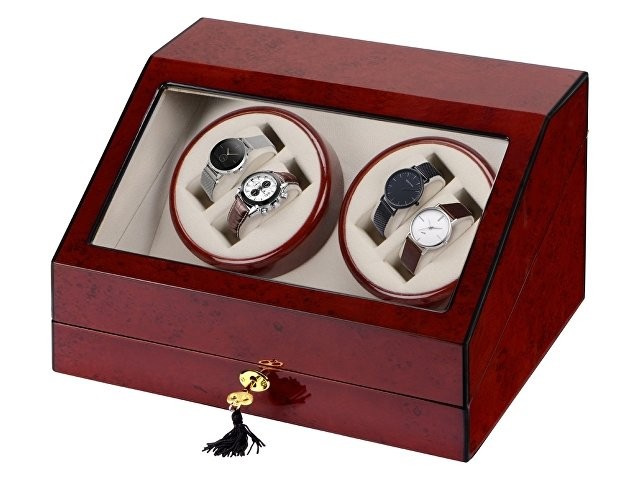 Прекрасный подарок для успешных людей и любителей часов. Шкатулка из высококачественного красного дерева позволит аккуратно хранить аксессуары. Шкатулку можно запирать на ключ. Лаконичный дизайн шкатулки делает ее универсальным подарком для мужчин и женщин.