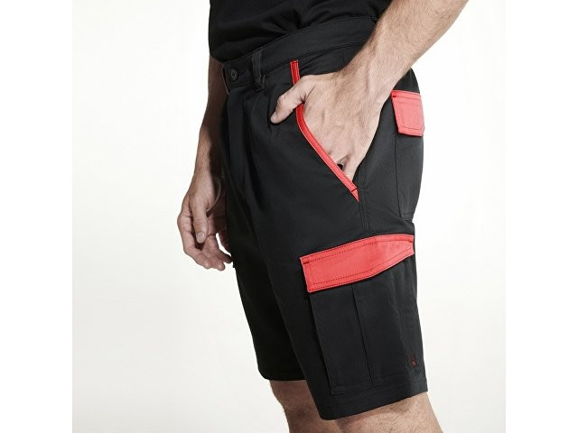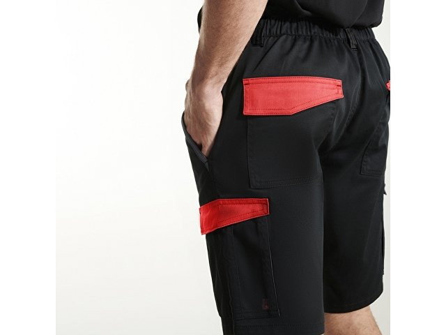 Шорты в двухцветной комбинации - Удобная и регулируемая ткань. - Контрастные петли для ремня, клапаны, складка и кант по краю кармана - Эластичный пояс сзади. - Два передних кармана. - Два задних кармана с клапаном и застежкой-липучкой. - Два боковых кармана со складкой и клапаном застегиваются на липучку.