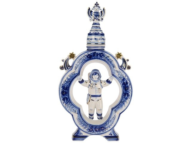 Оригинальный подарок для людей, интересующихся космосом, а также связанных с ракетостроением. Уникальный фарфоровый штоф с фигуркой космонавта и российским гербом выполнен в гжельской технике росписи. Внимание! Данное изделие относится к категории повышенной хрупкости. Для обеспечения его целостности и безопасной транспортировки настоятельно рекомендуется использование обрешетки. Обрешеточная упаковка является обязательной при доставке, и компания Oasis не несёт ответственности за повреждения, возникшие в результате ненадлежащей упаковки или транспортировки без обрешетки.