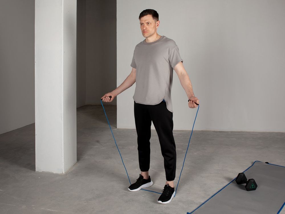 Скакалка упакована в индивидуальный полиэтиленовый пакет с липким краем.