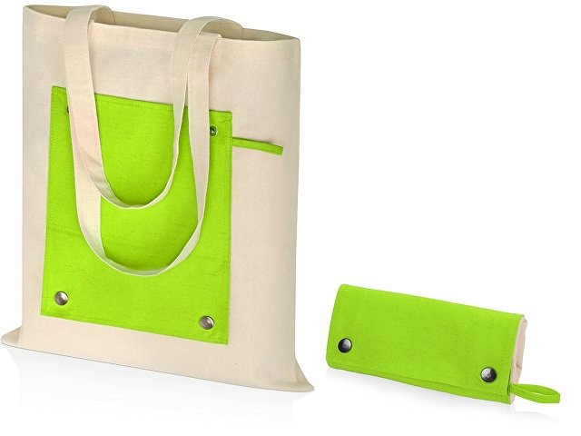 Складная хлопковая сумка для шопинга Gross с карманом, зеленое яблоко